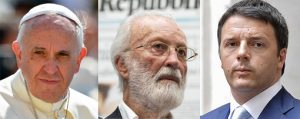 Matteo molesta e lusinga Scalfari con tante telefonate, almeno quante quelle con cui Scalfari molesta e lusinga Papa Francesco. Una analogia imbarazzante. Tutti e due, Matteo ed Eugenio, in apparenza mostrano di essere pappa e ciccia con i loro interlocutori al telefono; e se ne vantano.